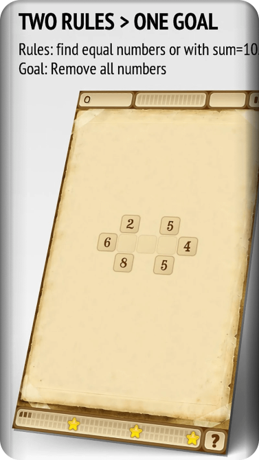 – You should find pairs of identical numbers or with sum equal to 10;